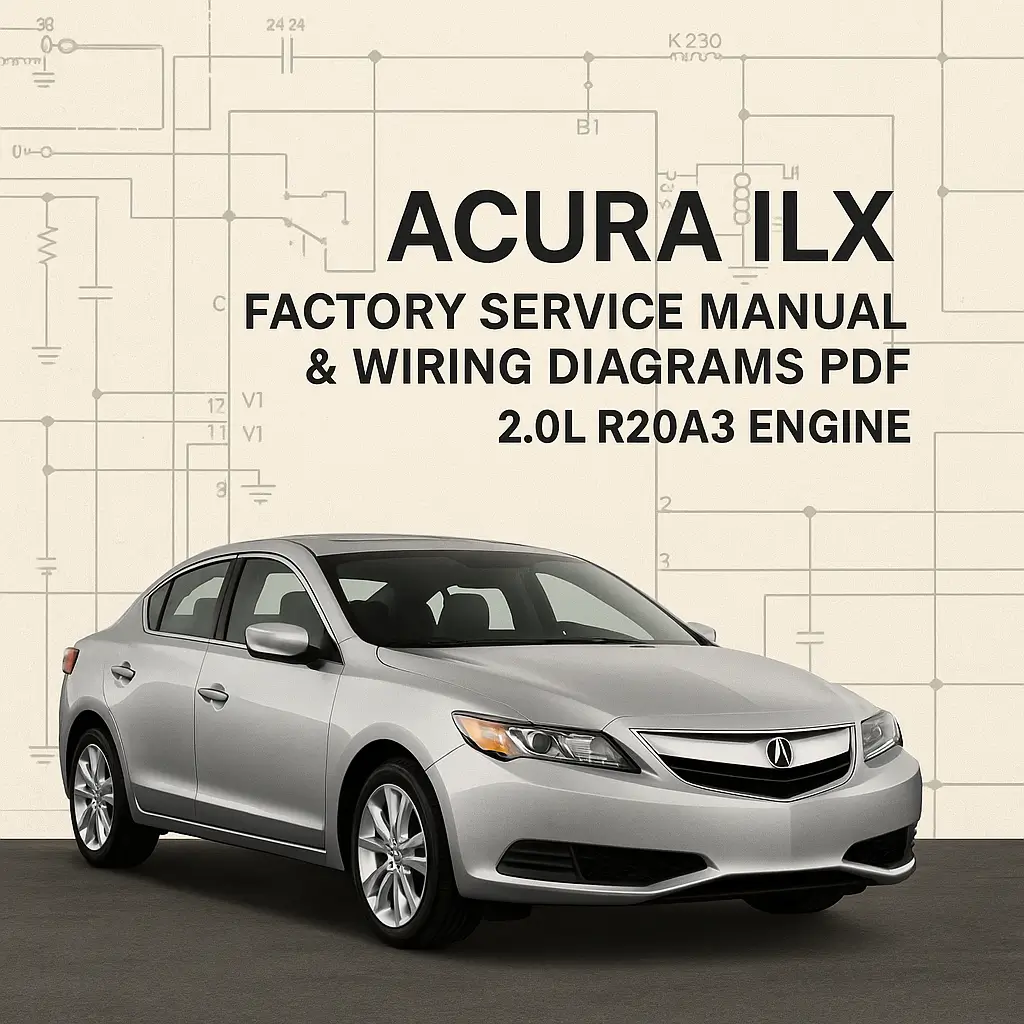The 2015 Acura ILX Service & Wiring Manual PDF is a digital download covering the complete 2.0L R20A3 engine and electrical systems. After checkout, a secure download link will be emailed directly.
