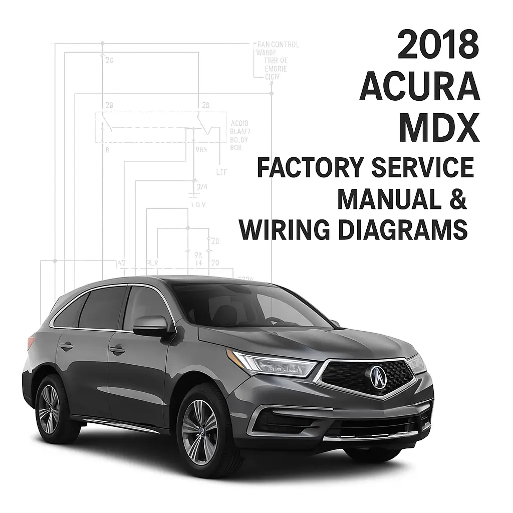 The 2018 Acura MDX Factory Service Manual provides full OEM schematics, diagnostics, and repair instructions for both 3.5L SOHC i-VTEC® V6 and 3.0L DOHC i-VTEC® Hybrid SH-AWD® models. It covers detailed electrical circuits, troubleshooting, and mechanical service procedures.