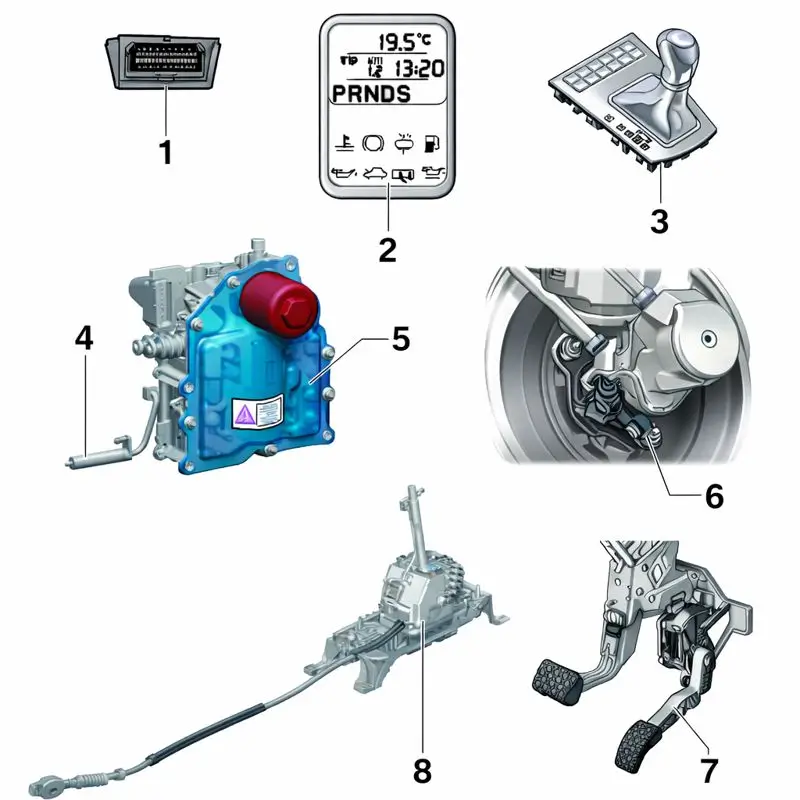 Electric / electronic components and fitting locations for the automatic gearbox DSG – 0CW